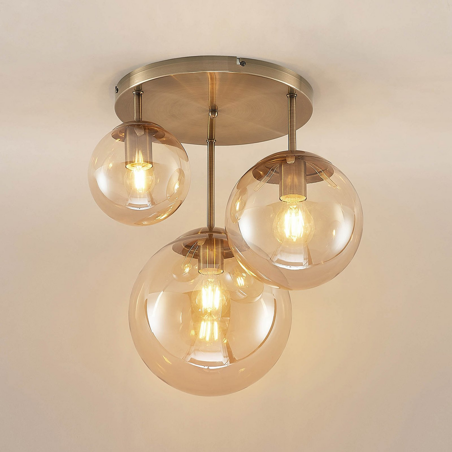 B-Ware Lindby Teeja Deckenlampe 3 Glaskugeln Messing Deckenlampe Glaslampe Lampe Glas