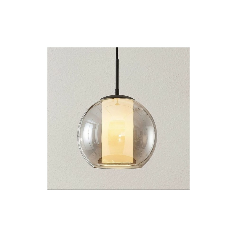 B-Ware Lindby Yela Glas Pendelleuchte Hängeleuchte Lampe Deckenlampe Rauchgrau 2 Stück