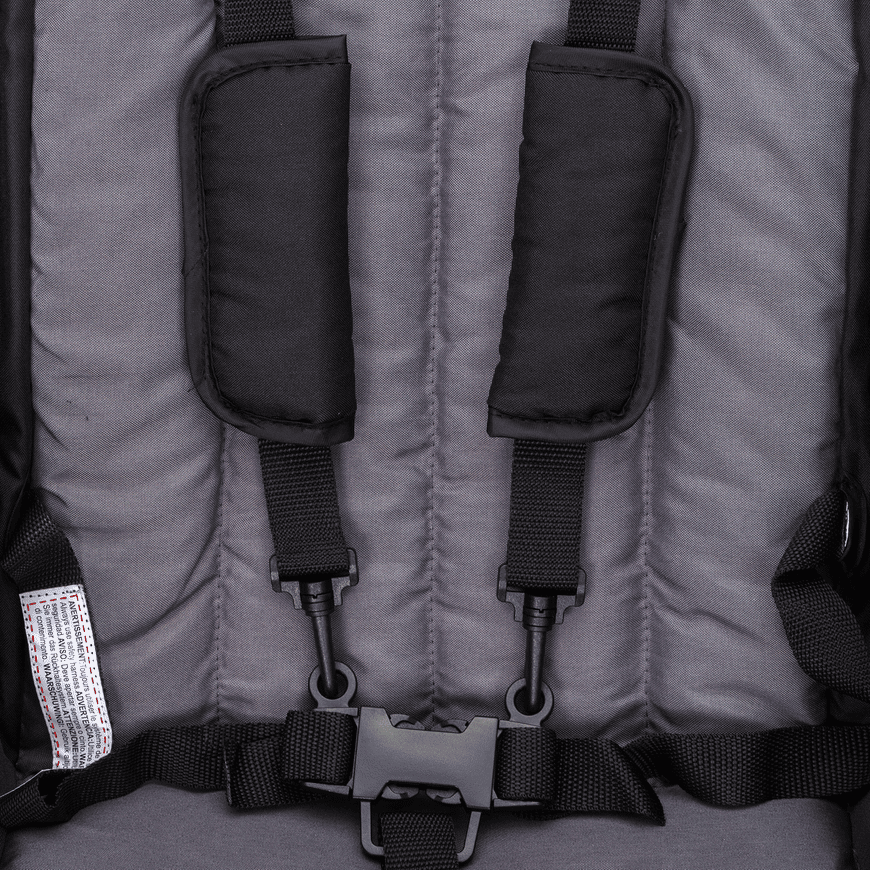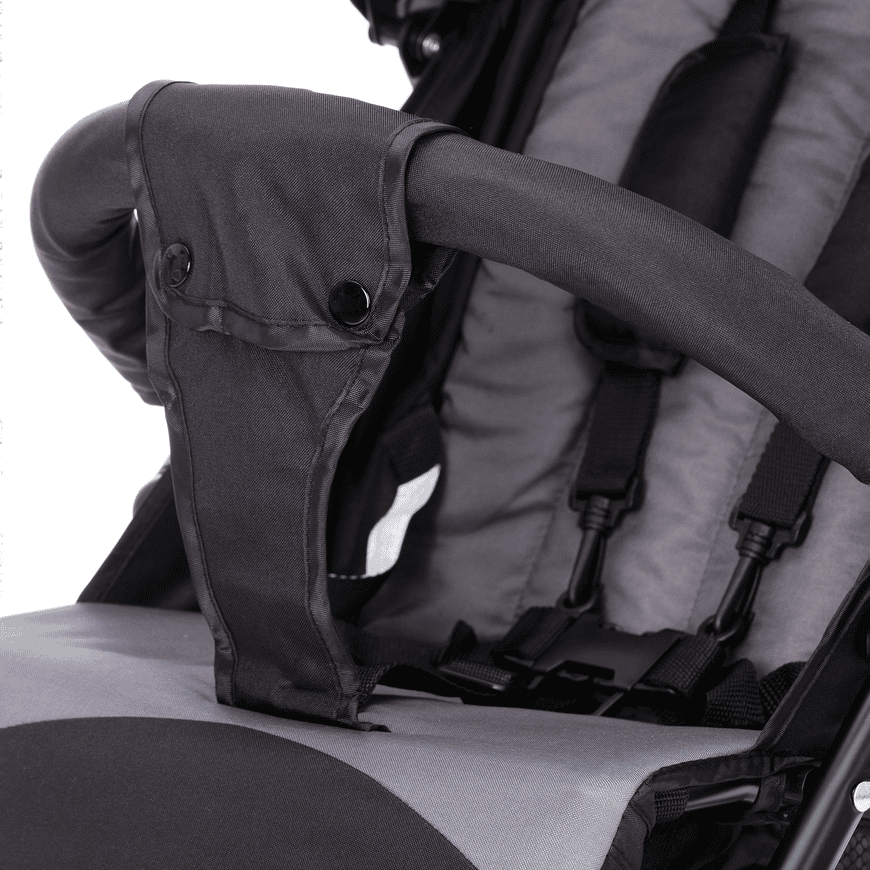 Die schwenk- und feststellbaren Vorderräder sorgen für eine mühelose Navigation, während die zuverlässige Feststellbremse Sicherheit bietet. Das 5-Punkt-Gurtsystem hält deinen Nachwuchs außerdem sicher im Buggy.
