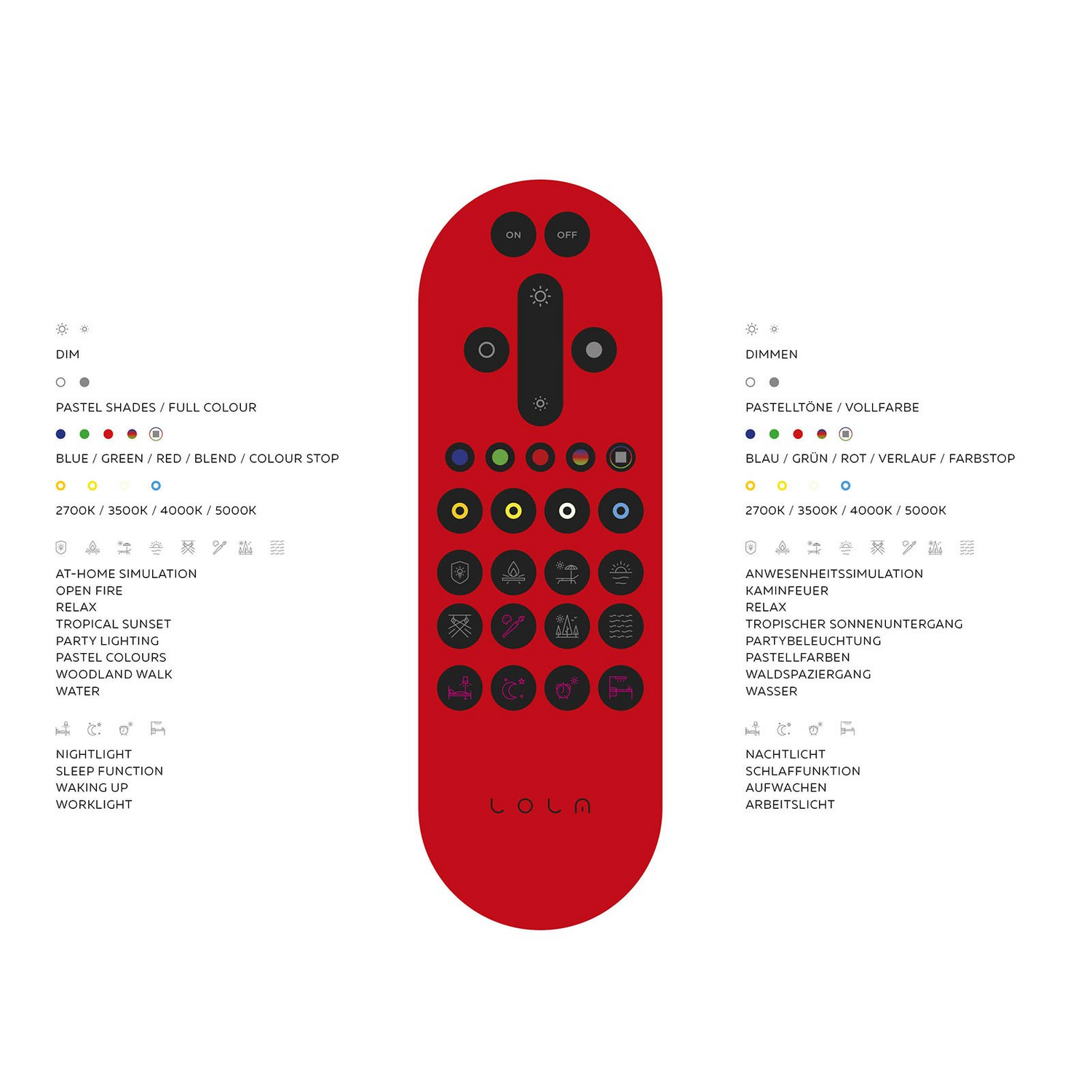 LOLAsmart ist der Einstieg in die Welt der smarten Lichtsteuerung. Ob ganz unkompliziert über die mitgelieferte Fernbedienung oder bequem per Sprachbefehl und sogar von unterwegs aus per App - Lichtfarbe, Farbtemperatur und Helligkeit lassen sich nach Belieben auf das Ambiente abstimmen.