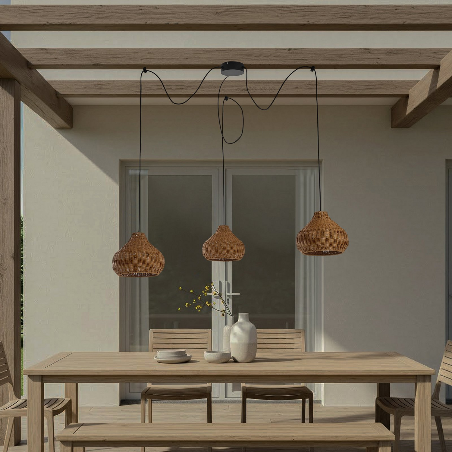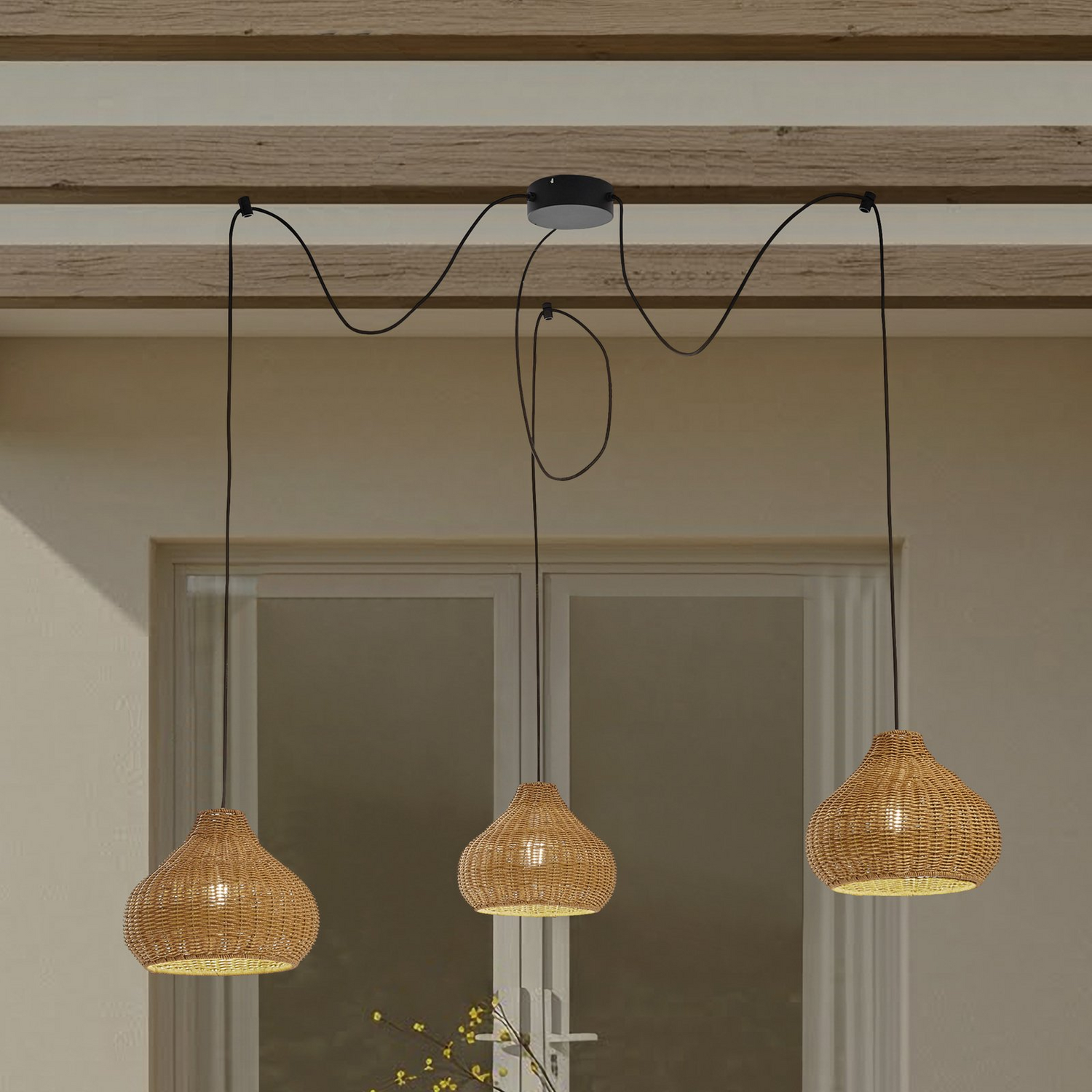 Lucande Außenhängelampe Pendelleuchte Außenlampe Rattan Leuchte Ip44 3 Flammig B-Ware