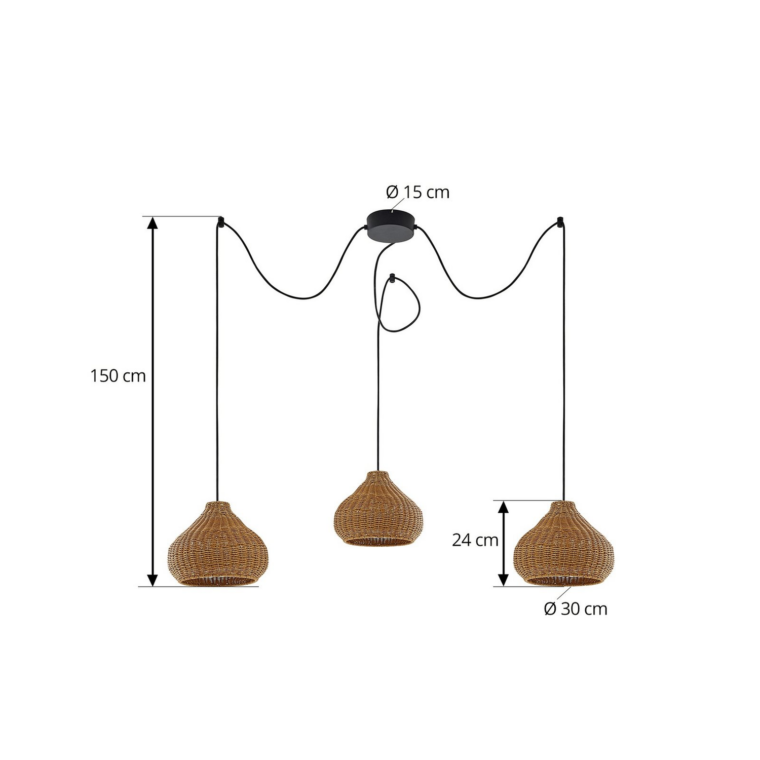 - Schirme: Ø 30 cm, Höhe 24 cm