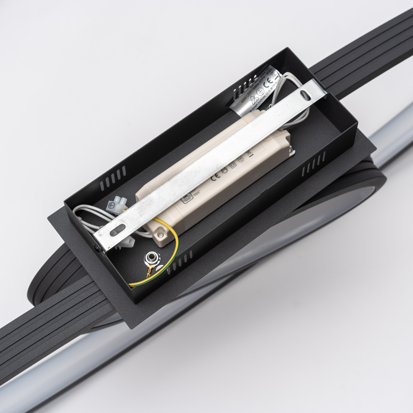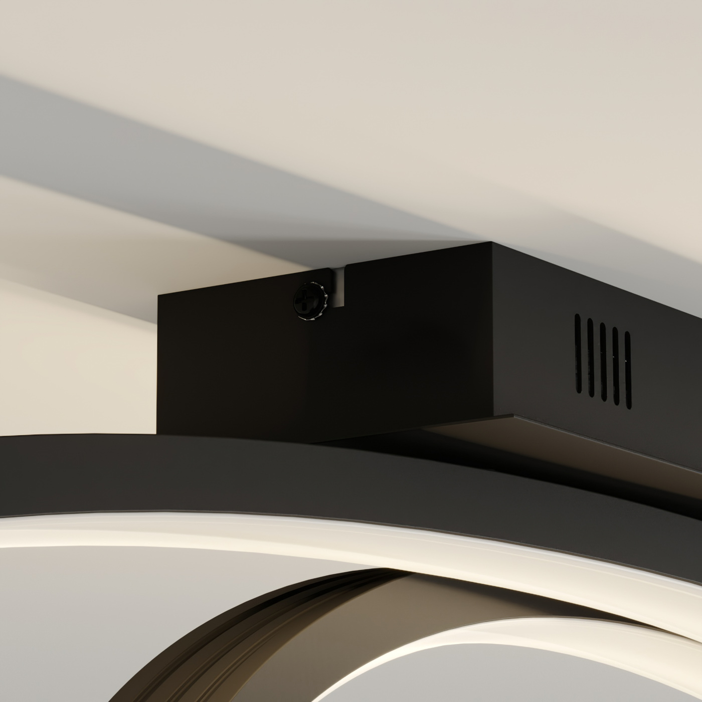 Die LED-Deckenleuchte Bronwyn mit ihren verschlungenen Bögen ist ein richtiger Blickfang. Dieser Eindruck wird durch den Kontrast der Farben Anthrazit außen und Weiß innen noch mehr intensiviert. Es ist möglich, die Leuchte mit dem Wandschalter in drei Stufen zu dimmen.