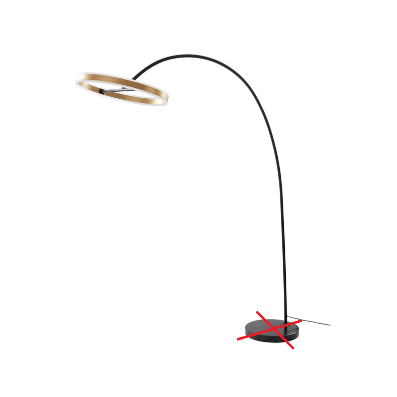 Die Yekta ist ein modern und detailreduziert wirkendes Beleuchtungsobjekt für zeitgemäße Einrichtungen. Sie kombiniert einen runden Fuß, ein bogenförmiges Gestell und einen modernen, ringförmigen Schirm, der sich seitlich neigen lässt. Der Messington des Schirms verleiht der Leuchte eine warme Ausstrahlung, die das Design angenehm auflockert.