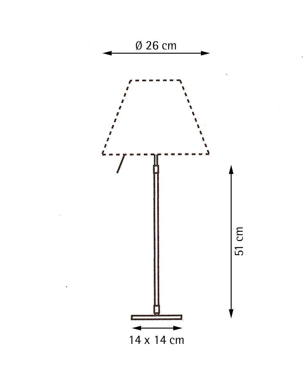 Abmessungen | H: 51cm, (Fuß) L: 14cm, B: 14cm, (Schirm) H: 17cm, Ø: 26cm |