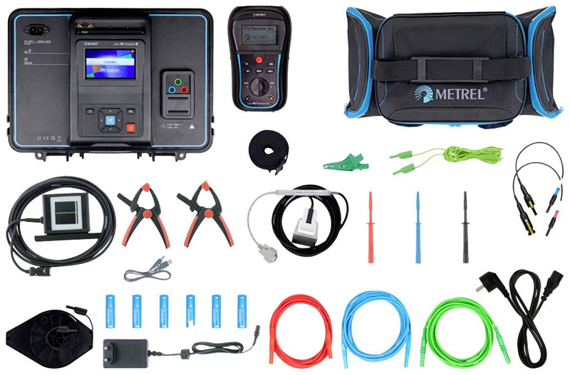 1500 V Photovoltaikanlagen mit Stil prüfen. Das MI 3115 PV Analysegerät bietet Prüfungen in Übereinstimmung mit der Norm IEC 62446 / VDE 0126-23 und unterstützt alle Prüfungen und Messungen der Kategorie 1 und 2. Dazu gehören die Messung des Isolationswiderstands der PV-Strings, die Messung der I/U-Kennlinie sowie die Umrechnung der Messergebnisse in STC-Werte und der Vergleich mit den von den PV-Modulherstellern ausgegebenen Nennwerten. Die Bestrahlung und die Zelltemperatur werden in Echtzeit mit der kabellosen Ferneinheit gemessen. Zusätzlich können die Prüfungen der Kategorie 1 in einem Auto-Test erfasst werden, welcher es dem Benutzer ermöglicht, alle gewünschten Prüfungen mit einer einzigen Berührung der Start-Taste auszuführen. Korrektur von zuvor falsch eingegebenen Parametern an bereits durchgeführten Messungen oder Gruppen von Messungen. Das Gerät wird über eine große Farb-Touchscreen-Anzeige gesteuert, über die der Benutzer den ausgewählten Test oder die Messung ausarbeiten und starten, sowie Ergebnisse in numerischer und grafischer Form speichern und überprüfen kann. Memory-Organizer, Handlungen an Einzel-oder Gruppenmessungen, Suchfunktion. PC SW Metrel ES Manager ermöglicht das Ausarbeiten einer Messstruktur und Messungen, lädt diese Struktur hoch oder runter und prüft die Ergebnisse, ermöglicht fortgeschrittene Analysen der I/U-Kurve, den DB-Explorer von PV-Modulen und die Erstellung eines professionellen Prüfberichts.