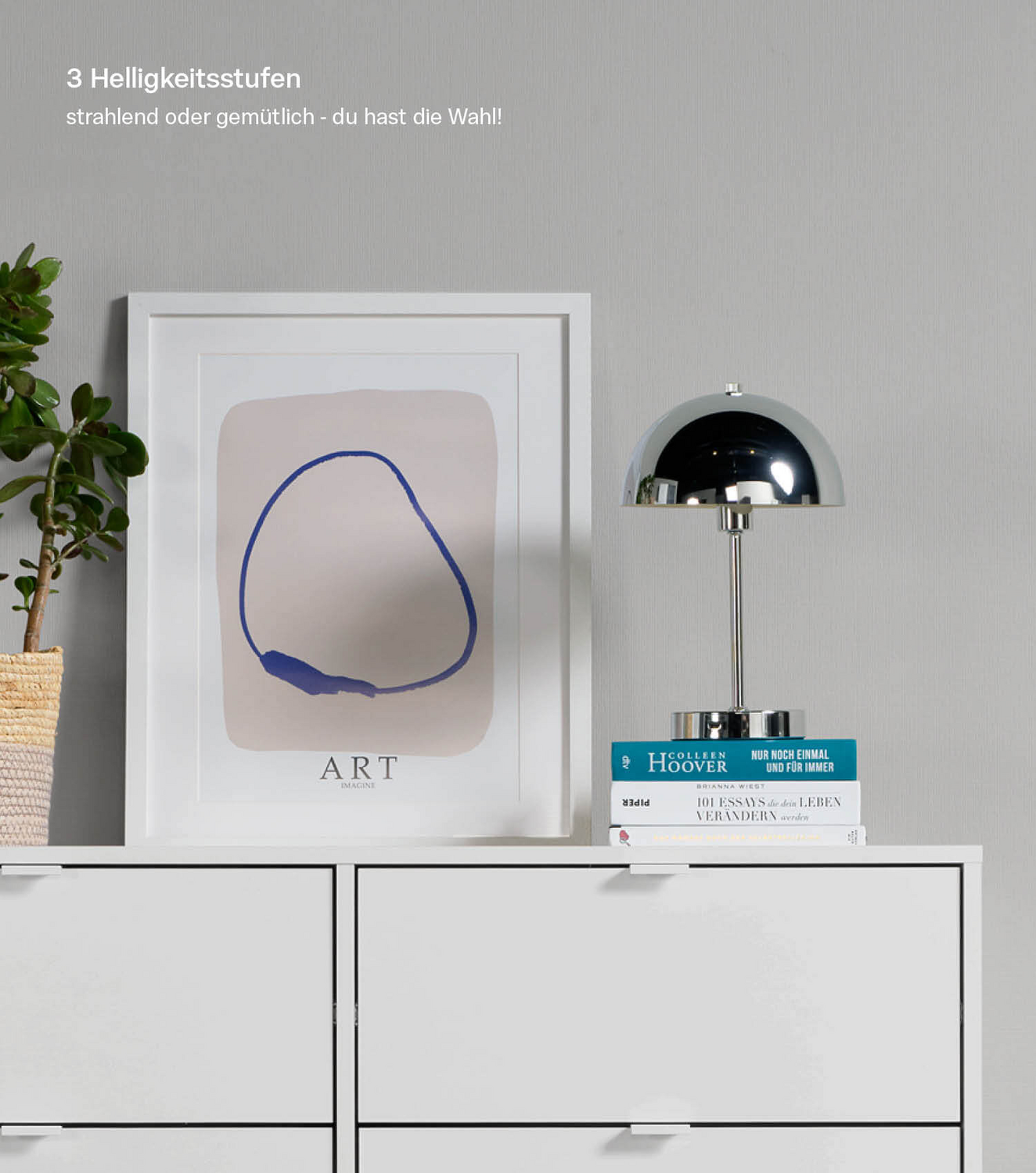 - 3 HELLIGKEITSSTUFEN! Die LED-Lampe aus Metall besitzt drei Helligkeitsstufen und spendet mildes Licht für ein stimmungsvolles Ambiente. Nutze sie als Deko-Lampe oder Nachttischlampe für gemütliches Licht.