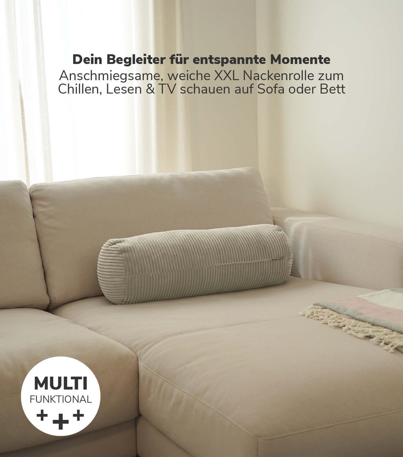 - MADE IN GERMANY! Die ultraleichte Kissenrolle mit Füllung aus hochwertiger Polyesterwatter und einem Bezug aus weichem Cordstoff wird lokal im Schwarzwald hergestellt. Achtung: Kein Stützkissen.