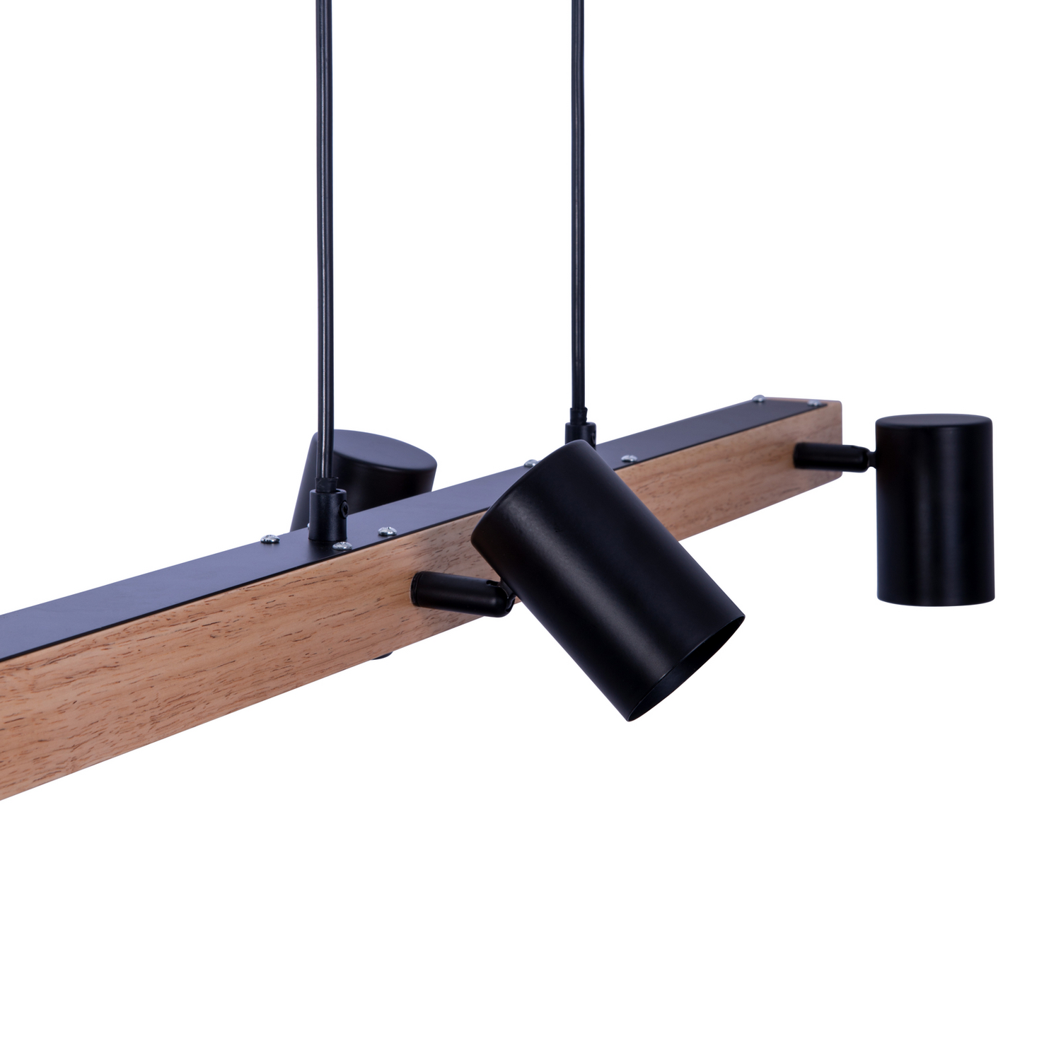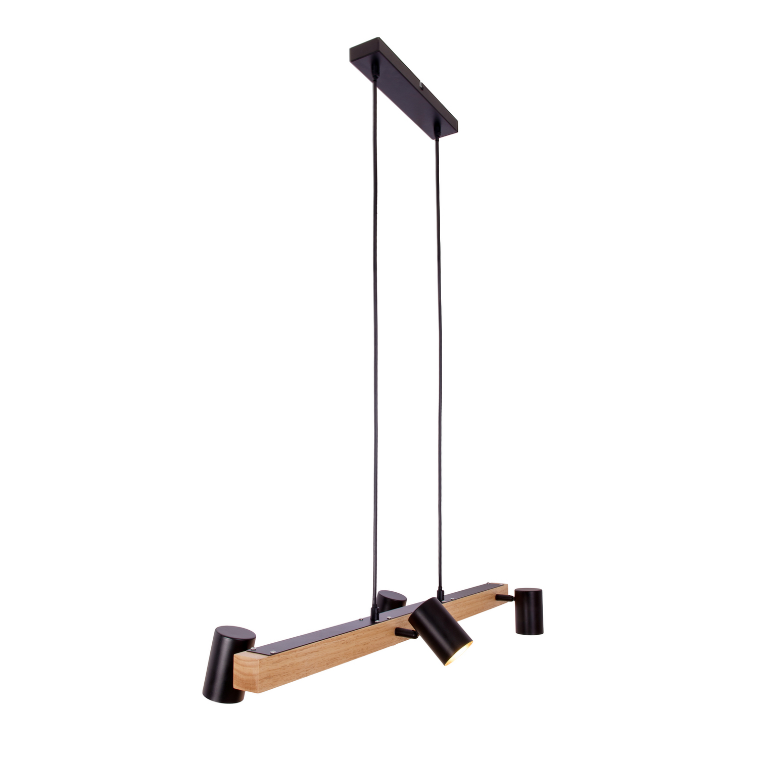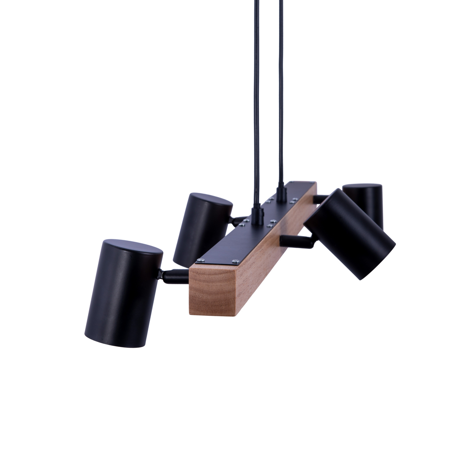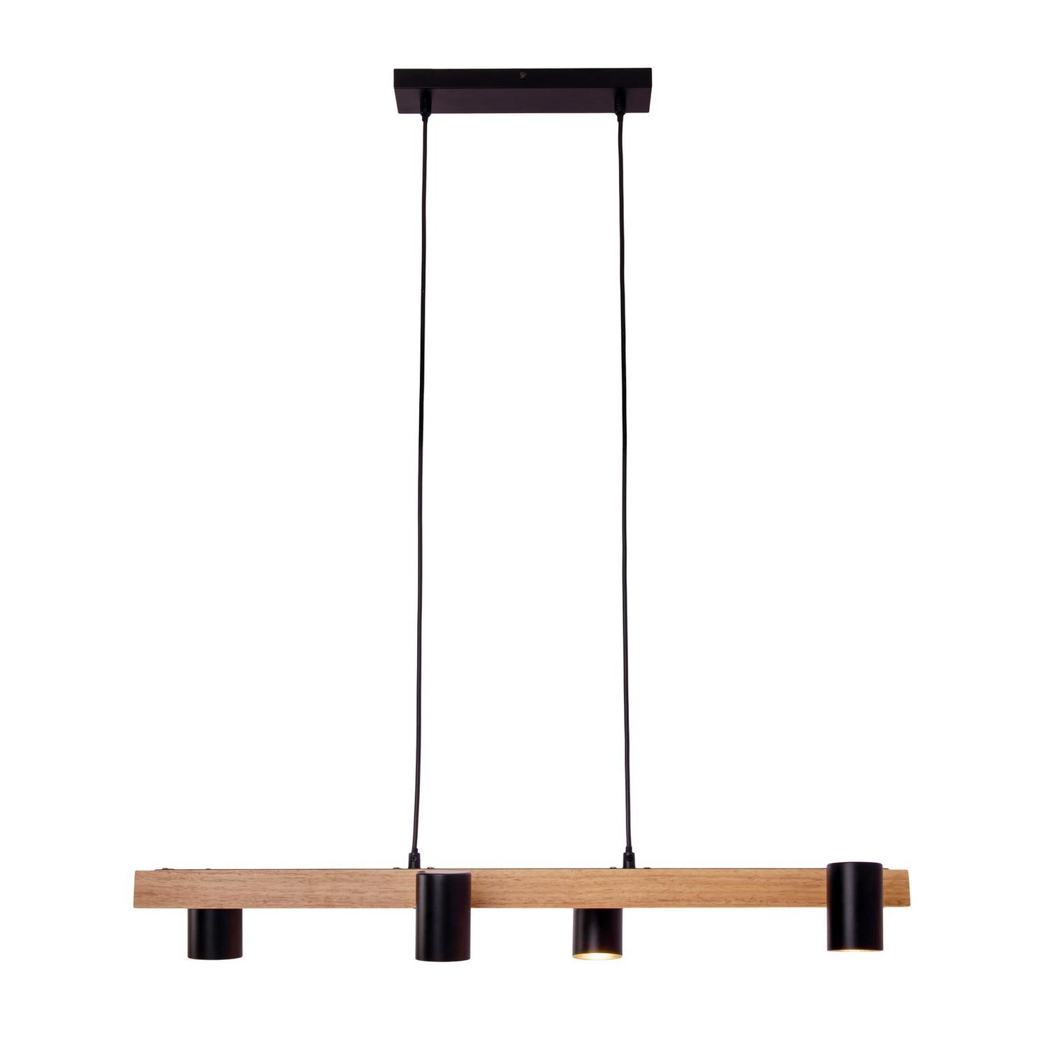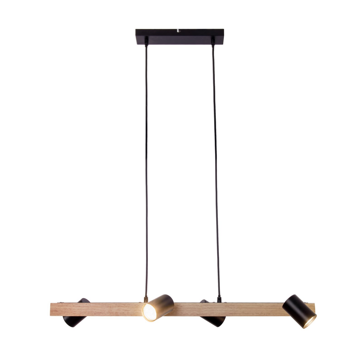 Hängelampe Frida mit vier Spots, schwarz/Holz hell | Hängelampe Frida mit vier Spots, schwarz/Holz hell |