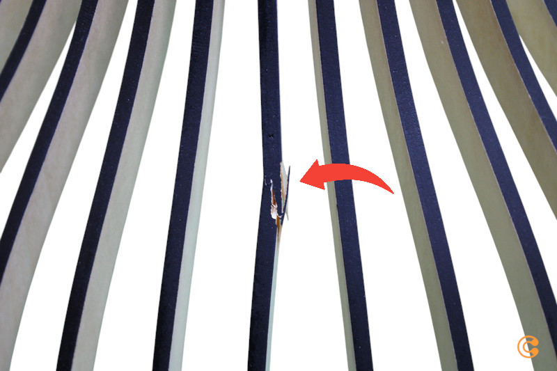 Der Artikel weist einen Mangel auf: Riss in einer Strebe - siehe Fotos