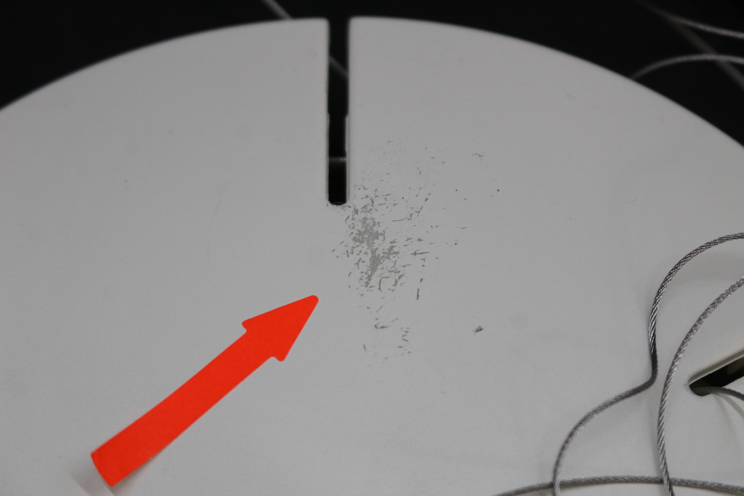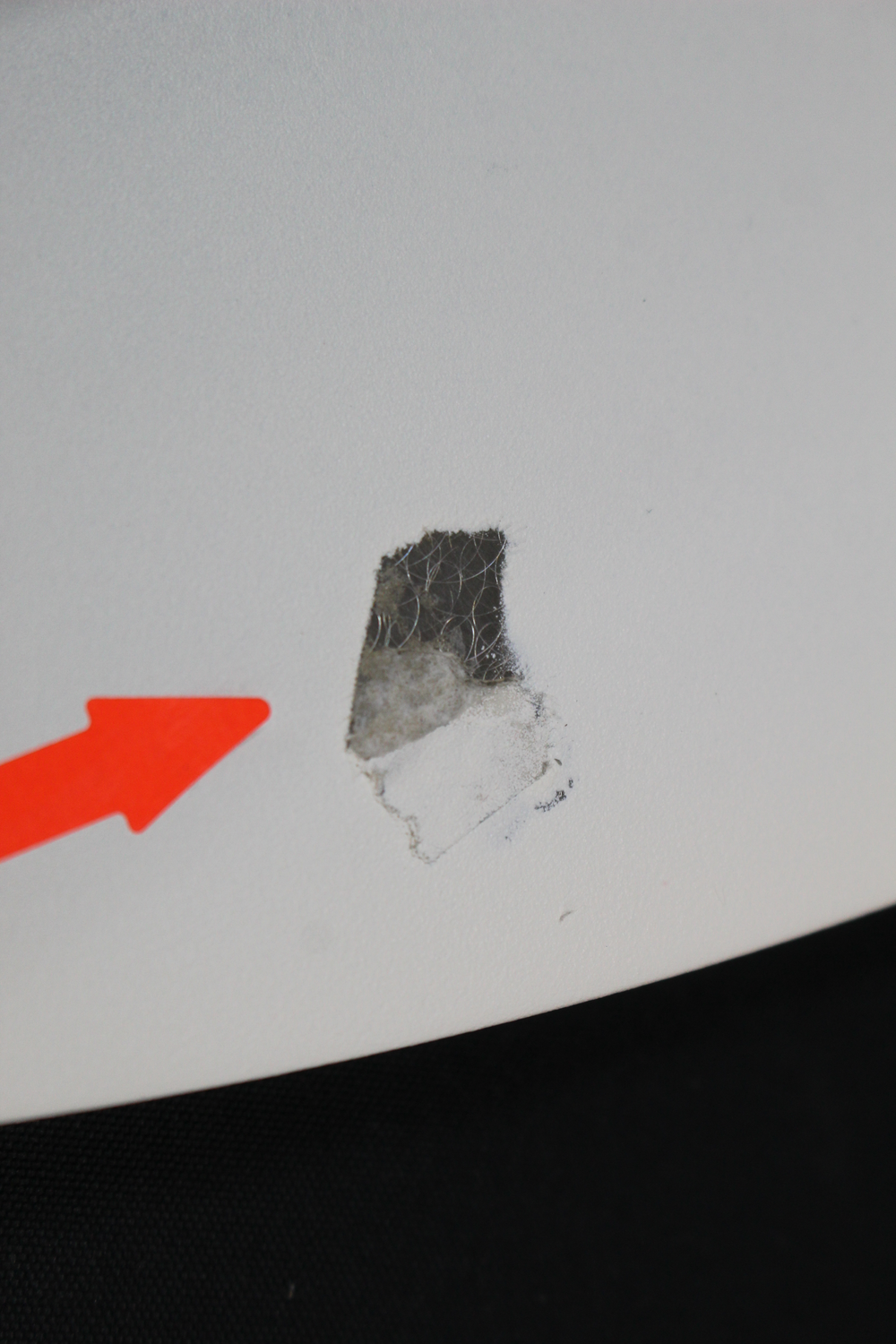 Der Artikel weist mehrere Maengel auf: Kratzer - oben, Lackschaden - unten.