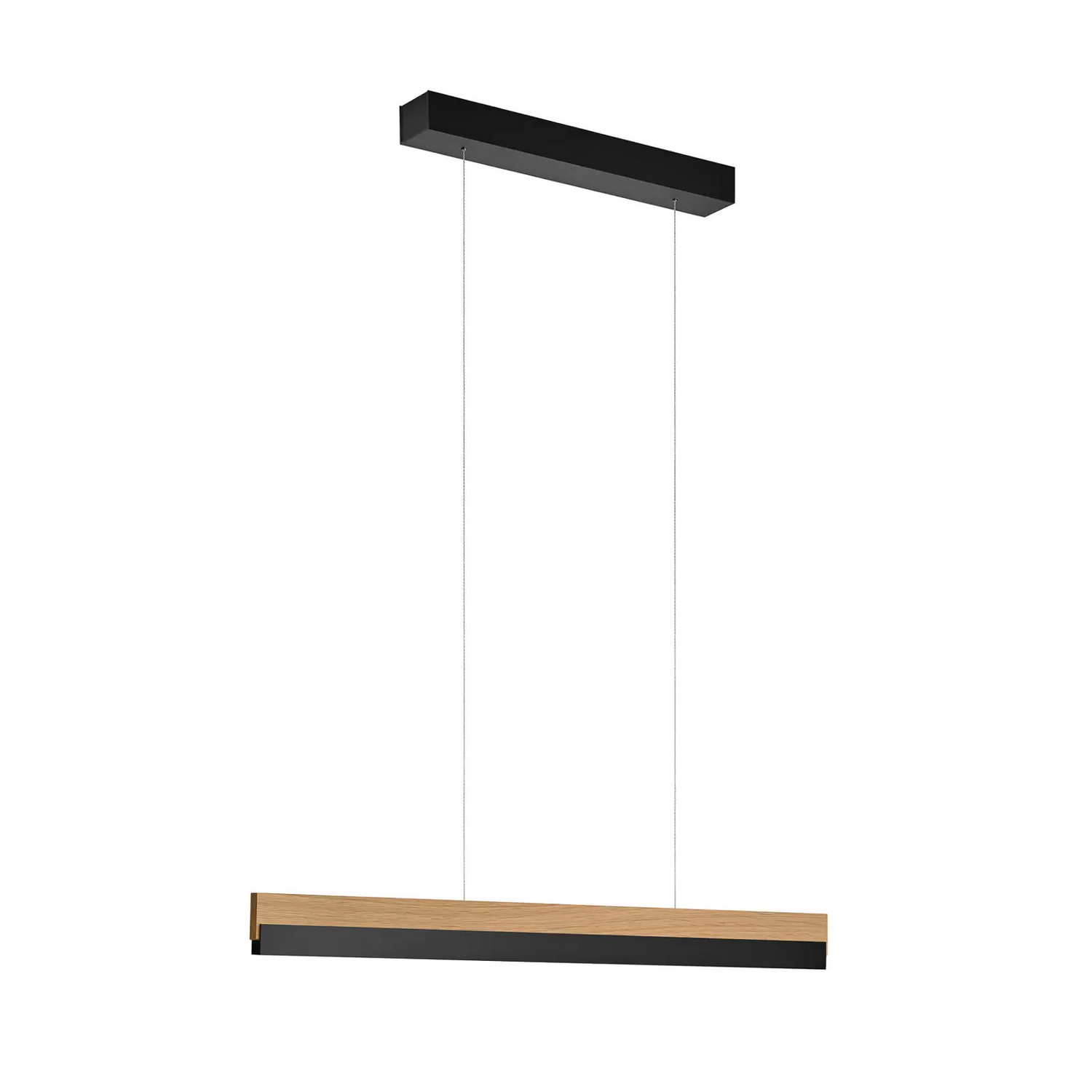 Quitani LED-Hängeleuchte Keijo, schwarz/eiche, 80cm