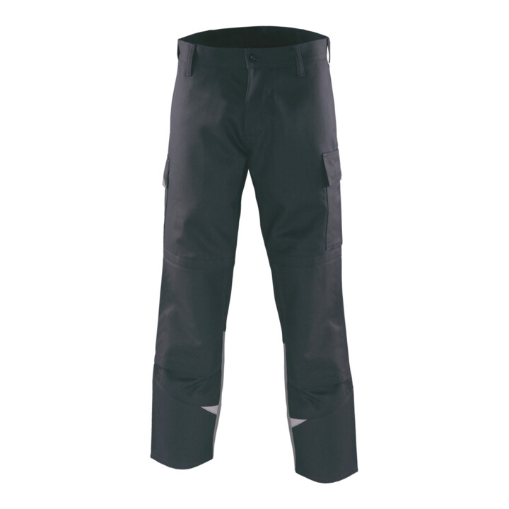 Eigenschaften: Hochwertiger Schweißerschutz im modernen, zweifarbigen Design. Ständiger und optimaler Flammschutz bei Schweißarbeiten. Angenehmer Tragekomfort bei gleichzeitig hohem Schutz. Hohe Farbechtheit auf Grund von Indanthrenfärbung. Die schwere Gewebequalität von 330 g/m2 ist besonders für intensive Schweißarbeiten prädestiniert. Permanenter Flammschutz − auch nach 100 Wäschen gemäß EN ISO 15797. Bundhose mit Gürtelschlaufen und Knopf. Auf der linken Seite eine große Tasche mit Patte und Druckknöpfen. Rechts schräge Zollstocktasche mit Patte und Druckknopf. Knietaschen mit Klettverschluss. Norm: EN ISO 11611, Klasse 1, A1, A2; EN ISO 11612, A1, A2, B1, C1, E2, F1. EAN/GTIN: 4057121033499.