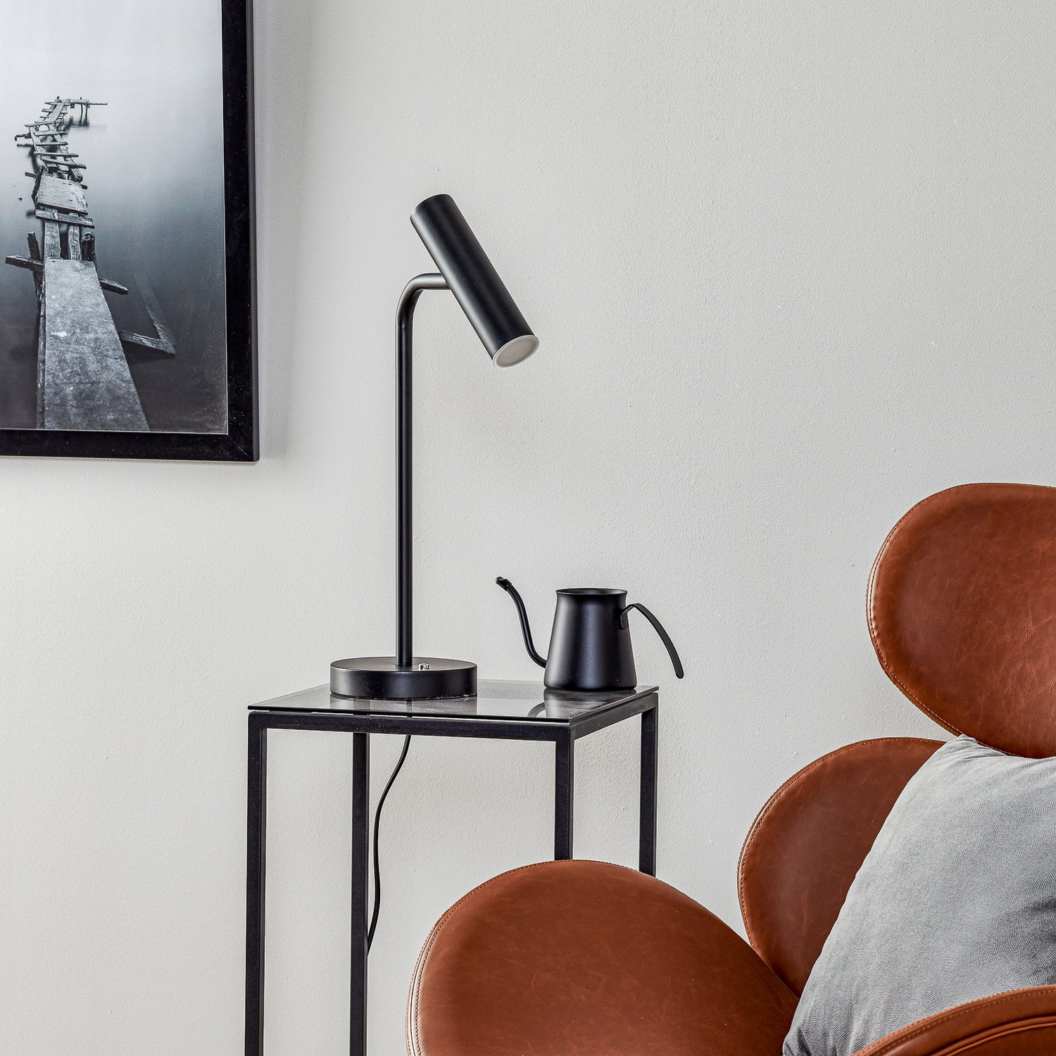 Dimmbare LED-Tischleuchte Stina, schwarz Die zylindrische LED-Tischleuchte Stina ist perfekt als Schreibtisch- oder Nachttischleuchte geeignet. Durch die nach unten gerichtete Lichtquelle sorgt sie für ein blendfreies, punktförmiges Licht, was zum "Bücher schmökern" einlädt. Das schwarz mattierte Metall fügt sich mit Leichtigkeit in fast jede Umgebung ein und die Leuchte sorgt mit ihrem warmweißen Licht für eine wohnliche Atmosphäre. Durch die zusätzliche 3-stufige Dimmfunktion und den dreh- und schwenkbaren Leuchtenkopf kann das Licht individuell den Bedürfnissen angepasst werden. Die Veränderung der Helligkeit wird über den Schalter auf dem Lampenfuß reguliert. Eine modern gestaltete Lichtquelle, die aufgrund ihrer zeitlosen Ästhetik viele Jahre Freude bereiten wird.