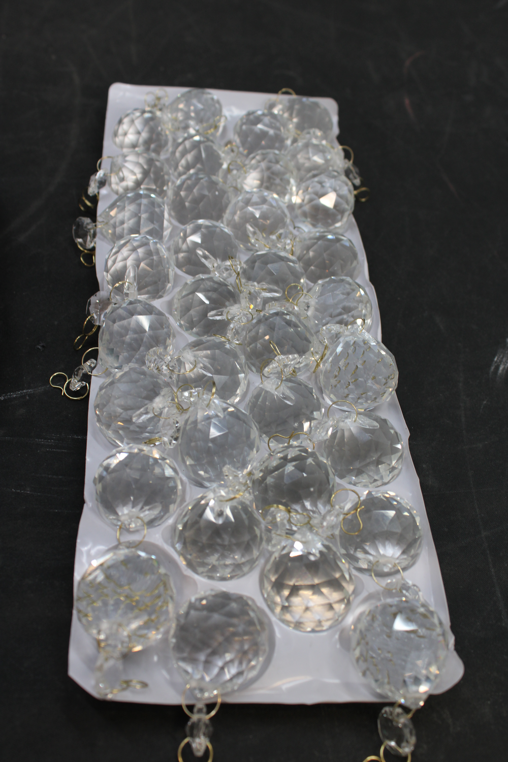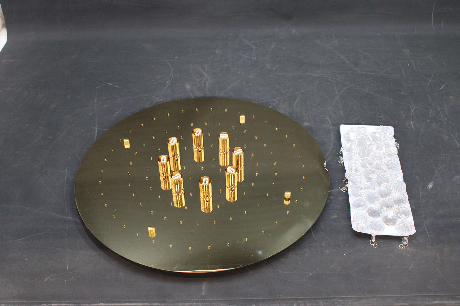 Im Lieferumfang fehlt: 2 Reihen der Kristalle - siehe Foto Der Artikel weißt einen Mängel auf: Wandtage etwas verbeult - siehe Foto