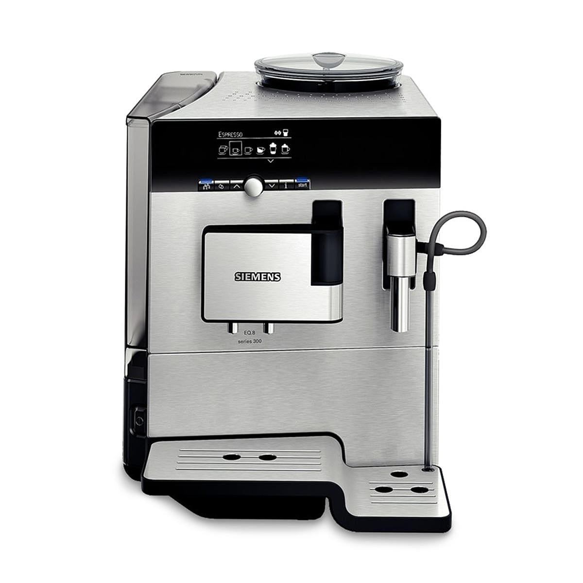 - Lieferumfang: Siemens TE803509DE Kaffeevollautomat, Messlöffel,Teststreifen für Wasserhärtegrad-Bestimmg, Verbindungsschlauch zu Milchdüse, Milchsteigrohr