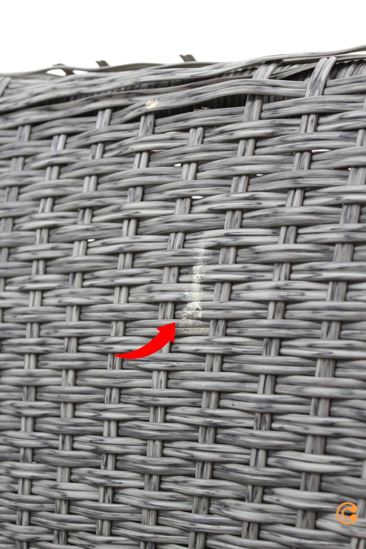 Der Artikel weist einen Mangel auf: Loch - oben Verschmutzung - vorne