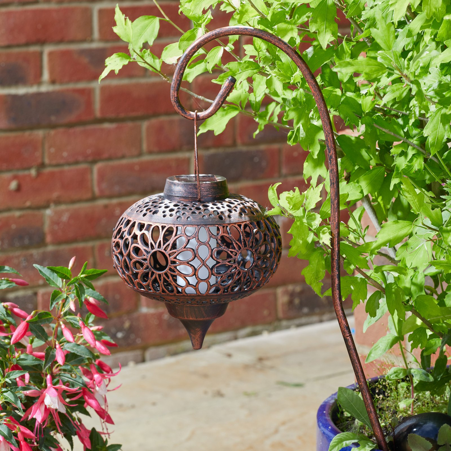 Mit ihrem orientalischen Laternendesign und ihrem flackernden LED-Licht bietet die LED-Solarerdspießleuchte Osman einen besonderen Effekt im Garten. Tagsüber entzückt sie mit ihrem bronzefarbenen sowie filigran gearbeiteten Design, bei Nacht zaubert sie eine atemberaubende Lichtatmosphäre durch wunderschöne Licht- und Schattenspiele. Dank des Solarbetriebs und des praktischen Erdspießes lässt sie sich an zahlreichen Standorten im Garten platzieren.