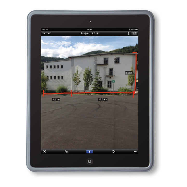 - 18 Messfunktionen: Länge, Fläche, Volumen, Dauermessung, Kettenmaße, Pythagoras mit 2 und 3 Messpunkten, Minimum und Maximum Tracking
