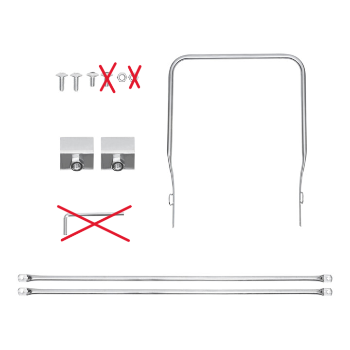 Im Lieferumfang fehlt: Inbusschlüssel, Schraube M6 x1, Sechskantmutter M6.
