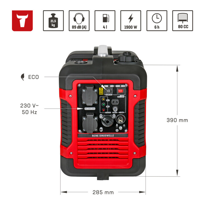 - KRAFTVOLL UND SICHER: Der kraftvolle STIER Stromerzeuger Premium sorgt durch seinen wartungsarmen 4-Takt Motor für hohe Leistungen bis zu 1900 W. Zwei 230-V-Schukosteckdosen (AC) erlauben den Betrieb diverser Elektrogeräte und Werkzeuge.