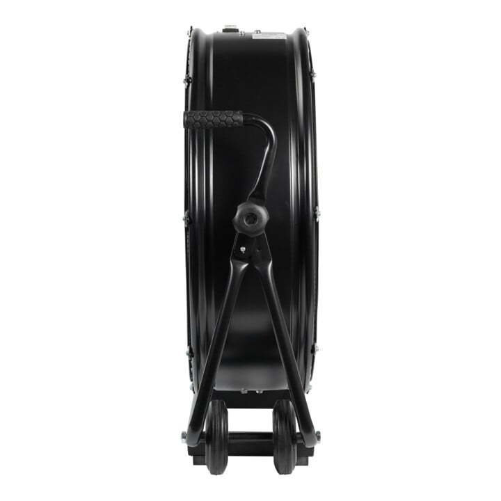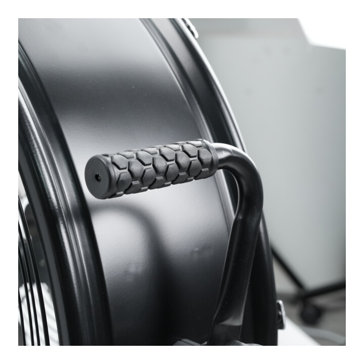 - Durch kurzes Anheben ist der Ventilator dank seiner zwei Gummireifen sofort bereit für einen unkomplizierten Standortwechsel