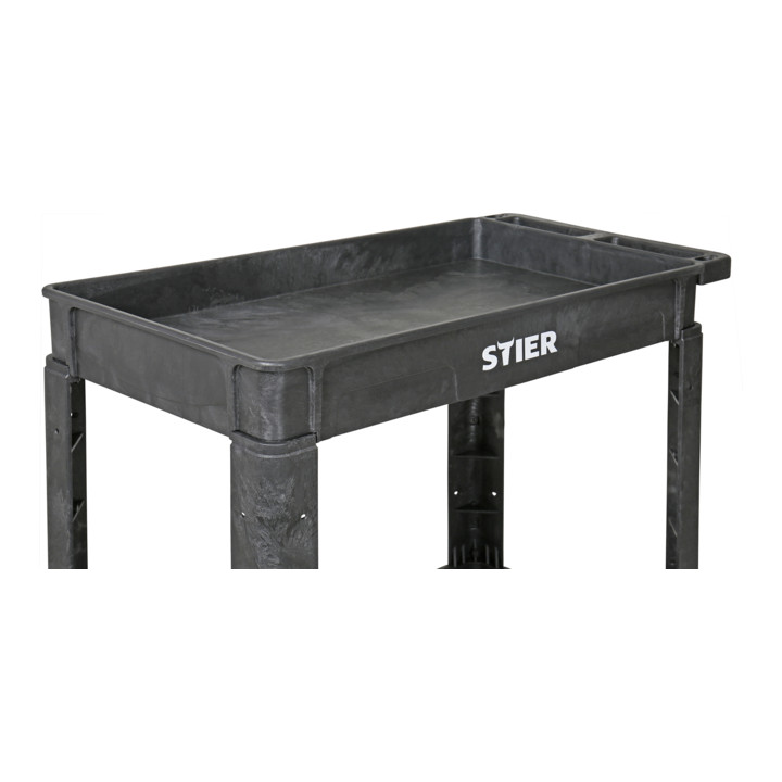 - Der STIER Vielzweckwagen bietet zwei stabile und griffige wannenförmige Ablageflächen