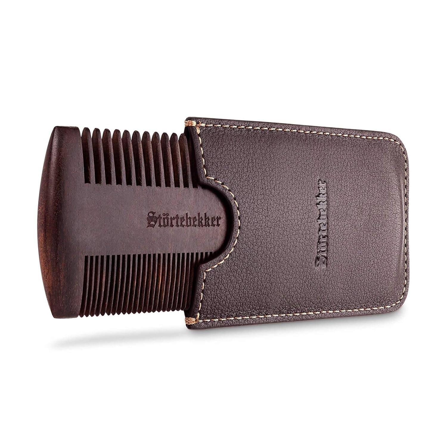 Störtebekker Premium-Bartkamm aus Holz mit handgefertigtem Lederetui
