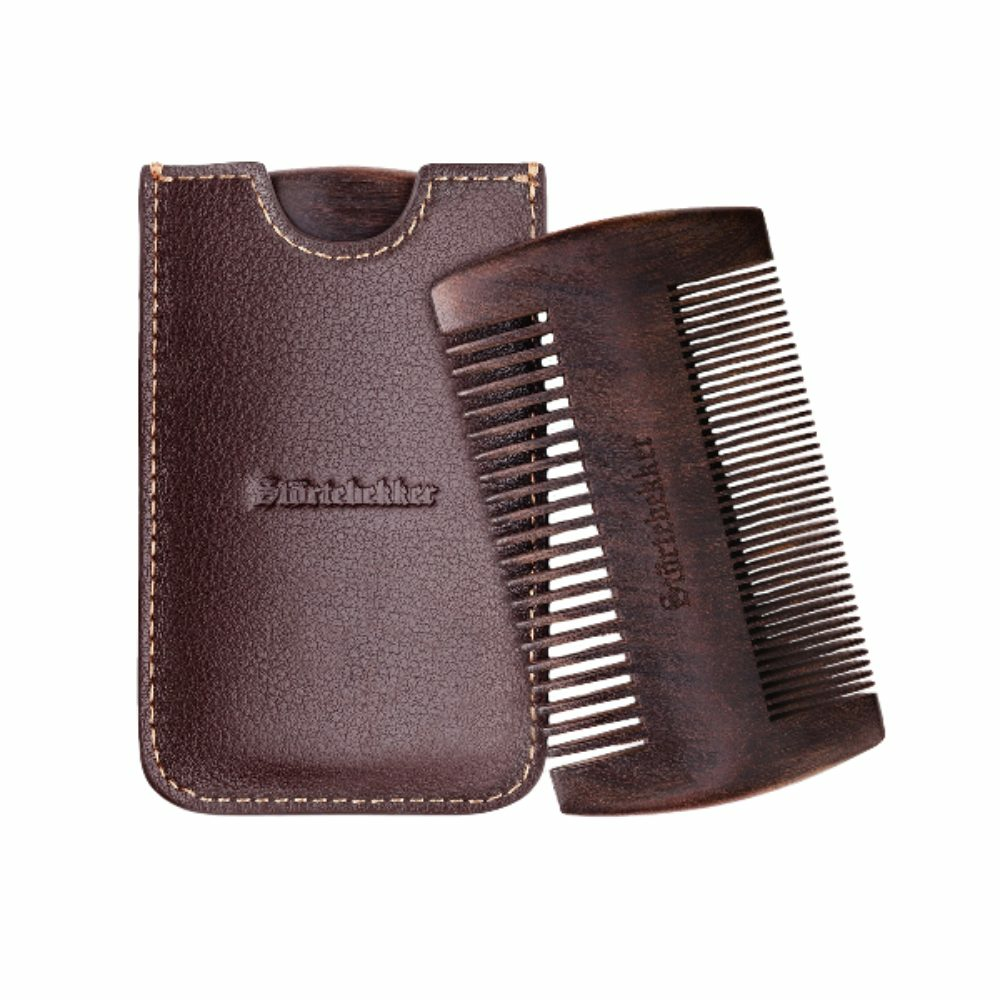 B-Ware Störtebekker Bartkamm Bartpflege Bart Kamm Sandelholz Lederetui Zwei Zahnungen