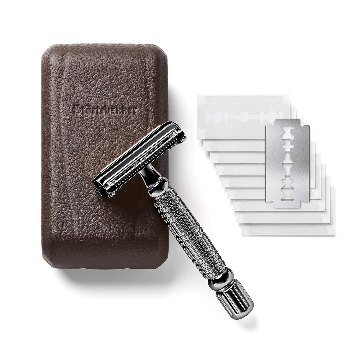 B-Ware Störtebekker Rasierhobel Herrenrasierer Rasierer 10 Rasierklingen Etui Spie8