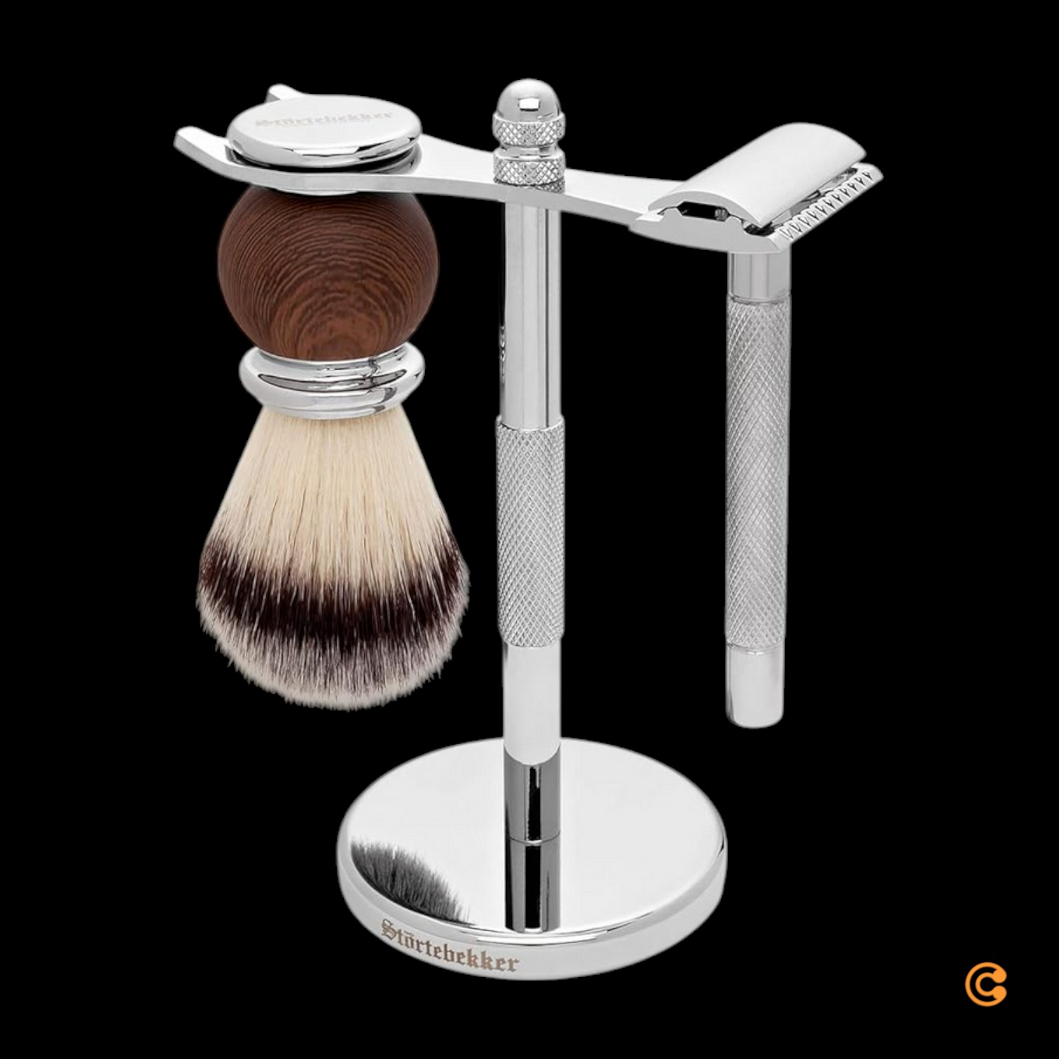 Erleben Sie die perfekte Kombination aus Stil und Funktionalität mit dem Premium Ständer für Rasierhobel und Pinsel von Störtebekker. Dieses hochwertige Accessoire ist ein Muss für jeden gepflegten Mann und bietet eine elegante Lösung zur Aufbewahrung Ihrer Rasur-Utensilien.