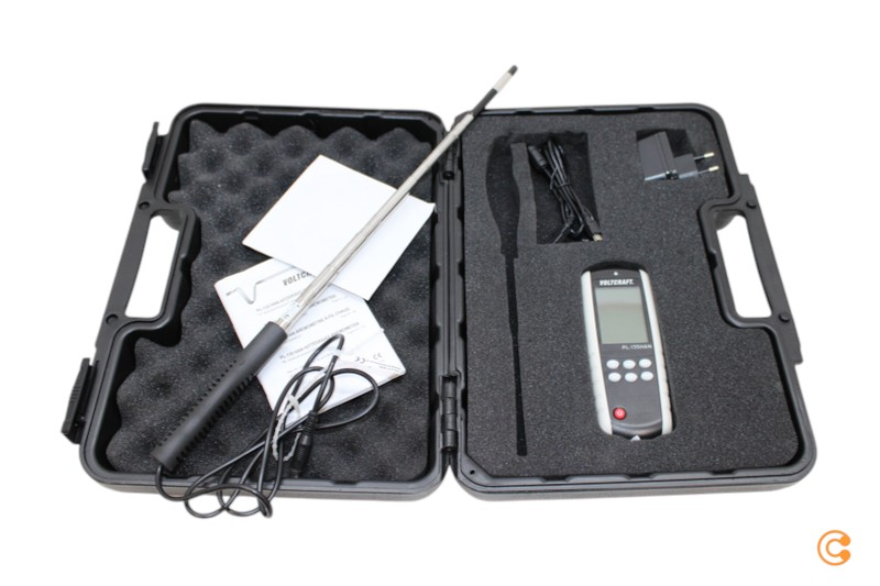 Das Thermische Anemometer enthält zur Luftmessung keine mechanischen Bauteile. Dies hat den großen Vorteil, dass bereits kleinste Luftströmungen erfasst werden können und der Sensor sehr kleine Abmessungen hat. Die Kombination von Hitzdrahtsensor und Thermoelement ermöglicht die schnelle und gleichzeitige Klima-Messung in einem Arbeitsgang. Dadurch ist dieses Messgerät ideal für den Messeinsatz im Heizungs-, Klima- und Lüftungsbereich.