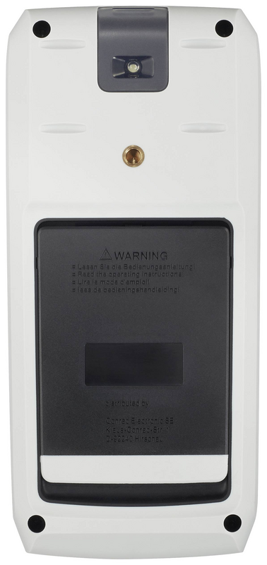 Display und Tastenschutz: Ein aufwändig produziertes 2-Komponenten-Gehäuse mit integriertem Weichgummi Schutz sorgt nicht nur für Griffigkeit, sondern schützt das Messgerät auch bei härteren Einsätzen. Kippsicher: Die breite Auflagefläche sorgt bei ausgeklapptem Standfuß für mehr Stabilität. Rutschfest: Das Messgerät bleibt auf Position.