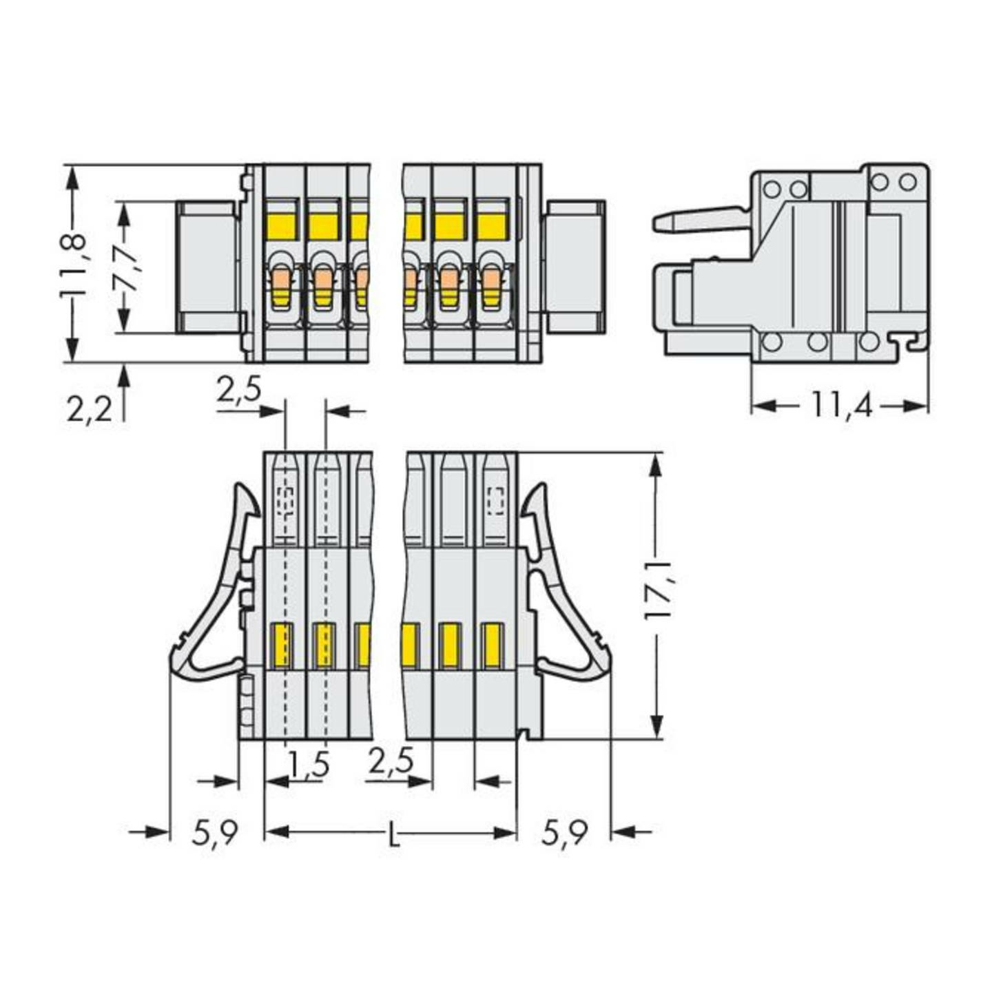 B-Ware Wago Buchsengehäuse Kabel Steckverbinder Polzahl Gesamt 2 Grau 100 St.