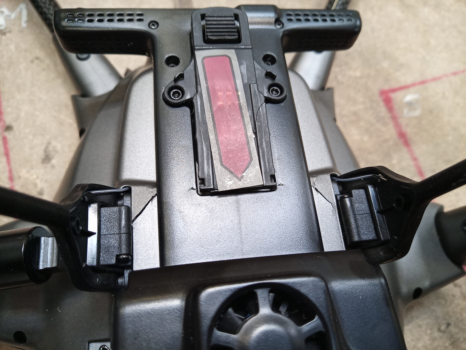 Die Drohne ist mehrfach gebrochen( Gehäuse und Anbauteile)-siehe Foto Zur Ersatzteilgewinnung. Die Fernsteuerung ist in Ordnung. Im Lieferumfang fehlen: Anleitung Gimble ( Kamera) Akku Ladegerät Rucksack