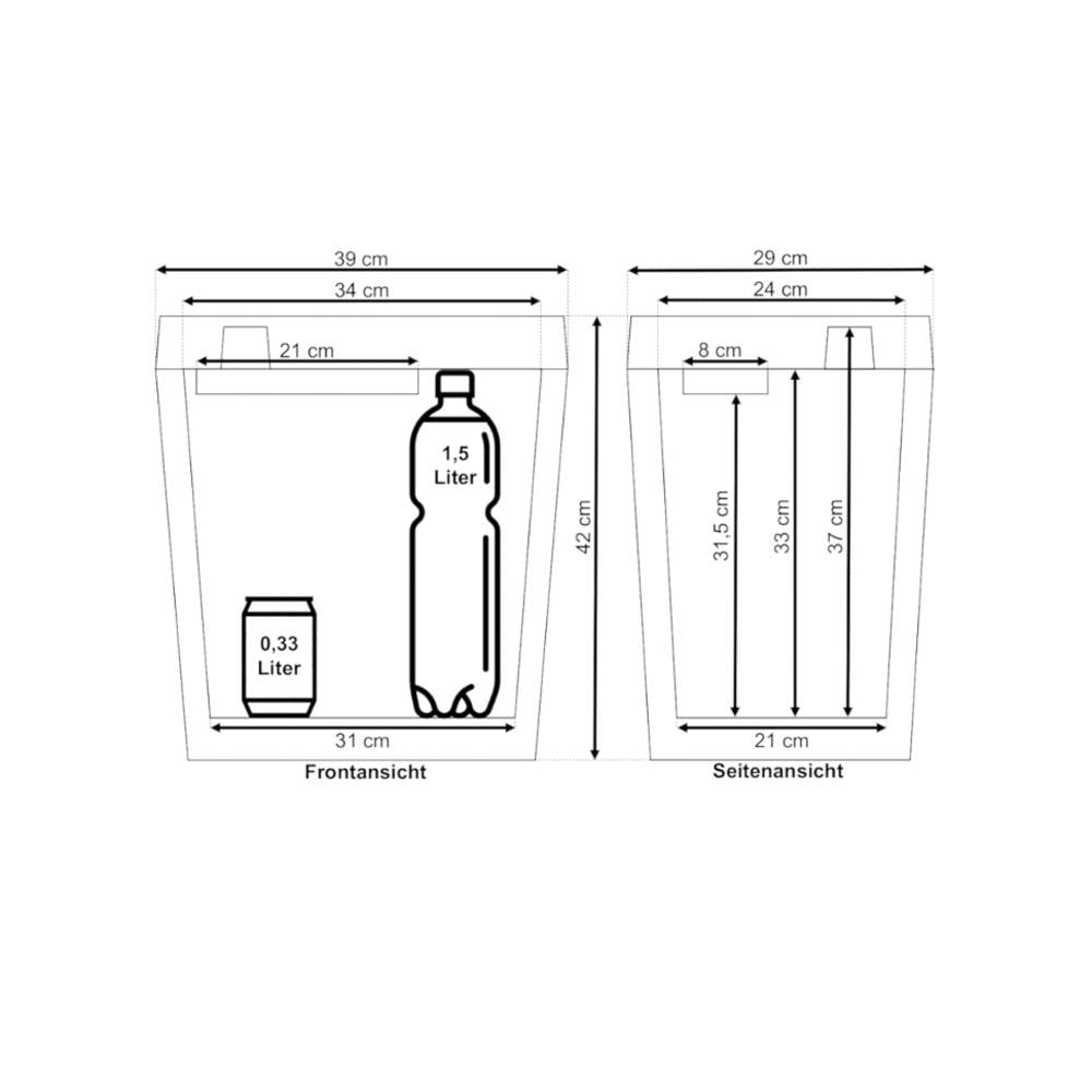 - Passend für 8x1,0 Liter(30,5cm Stehhöhe) oder 1x1,5 Liter (35cm Stehhöhe), 32x0,33 L Getränkedosen